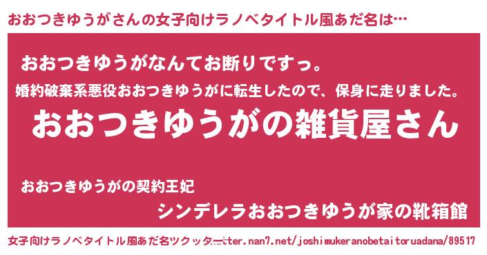 | 男性向けラノベタイトル風あだ名 | 『やはりおおつきゆうがの青春ラブコメはまちがっている 』 |