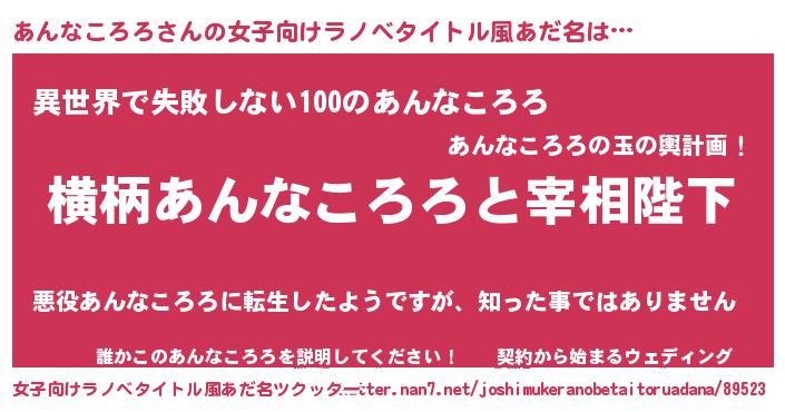 | 男性向けラノベタイトル風あだ名 | 『あんなころろに滅ぼされるだけの簡単なお仕事です』 |