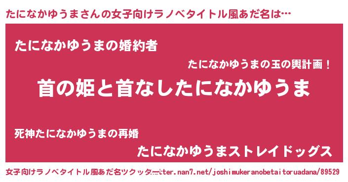 | 男性向けラノベタイトル風あだ名 | 『はたらくたになかゆうまさま!』 |