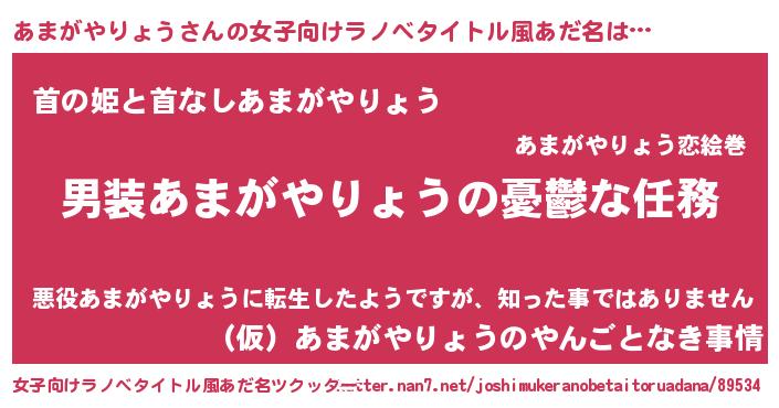 | 男性向けラノベタイトル風あだ名 | 『冴えないあまがやりょうの育てかた』 |