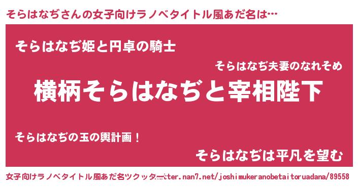 | 男性向けラノベタイトル風あだ名 | 『そらはなぢに滅ぼされるだけの簡単なお仕事です』 |