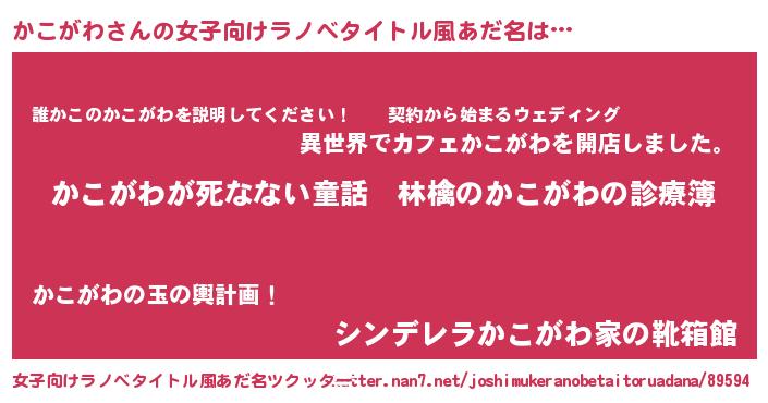 | 男性向けラノベタイトル風あだ名 | 『魔弾の王とかこがわ』 |