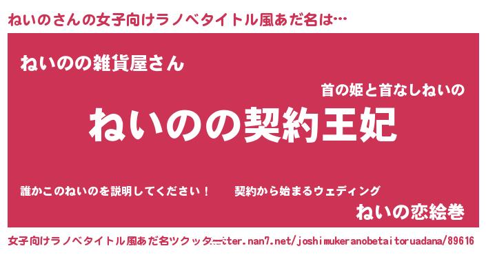 | 意味不明あだ名 | 『永久保存ねいの』『ねいのフォーエバー』 |