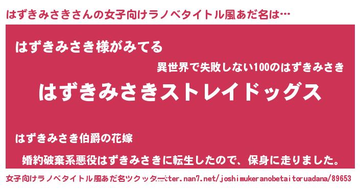 | 男性向けラノベタイトル風あだ名 | 『Re:はずきみさきから始める異世界生活』 |