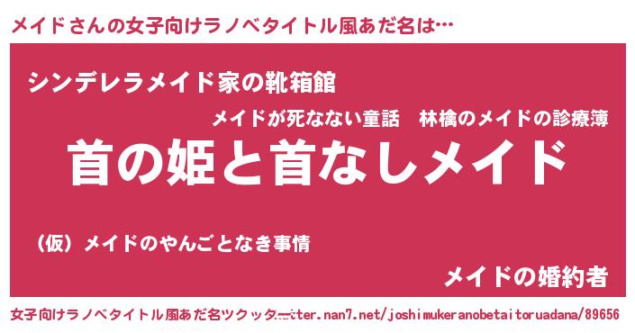 | 男性向けラノベタイトル風あだ名 | 『はたらくメイドさま!』『緋弾のメイド』 |
