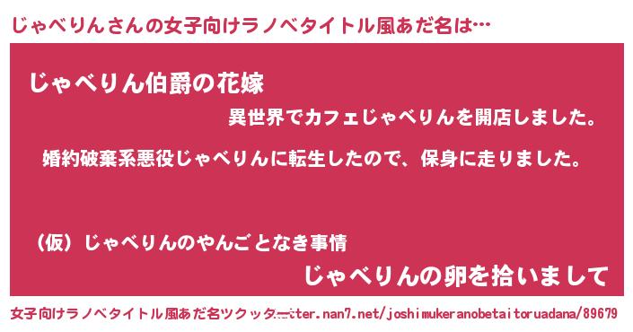 | 胡散臭い通販商品みたいなあだ名 | 『幸せが訪れる高級そうな絵画…その名も「じゃべりん」』 |