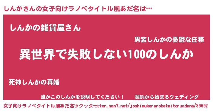 | 胡散臭い通販商品みたいなあだ名 | 『絶対に幸福をもたらす健康食品…その名も「しんか」』 |