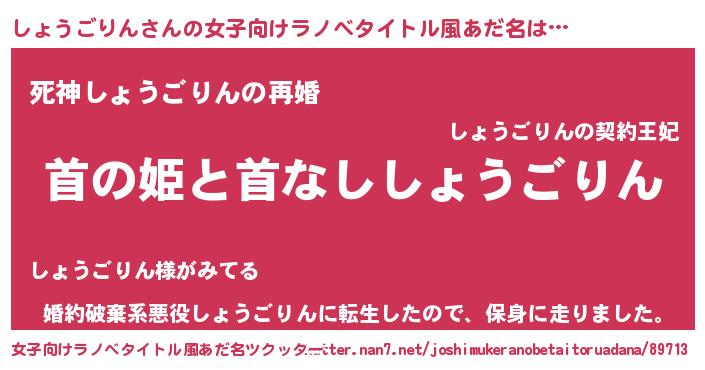 | 男性向けラノベタイトル風あだ名 | 『はたらくしょうごりんさま!』 |