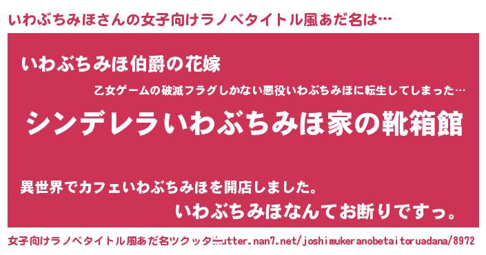 | 男性向けラノベタイトル風あだ名 | 『冴えないいわぶちみほの育てかた』 |