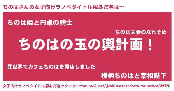 | 胡散臭い通販商品みたいなあだ名 | 『億万長者になれるブレスレット…その名も「ちのは」』 |