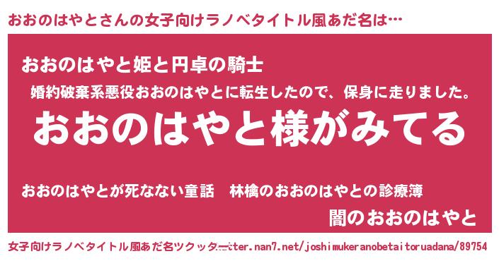 | 肩書あだ名 | 『おおのはやと団長』『おおのはやと閣下』 |