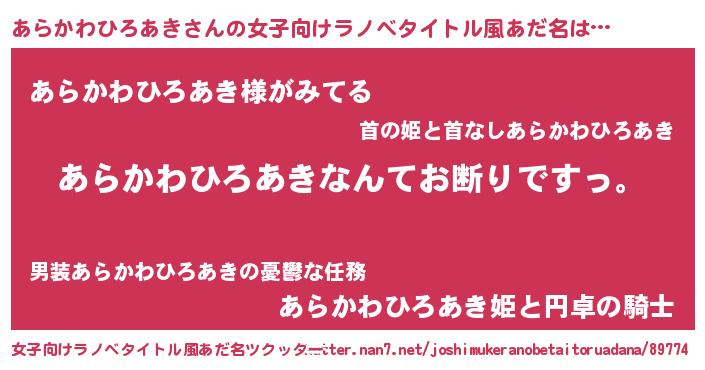 | 男性向けラノベタイトル風あだ名 | 『魔法科高校のあらかわひろあき』 |