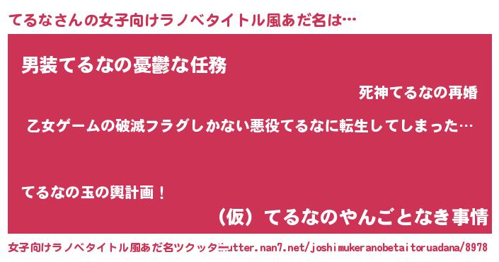 | 男性向けラノベタイトル風あだ名 | 『この素晴らしい世界にてるなを!』 |