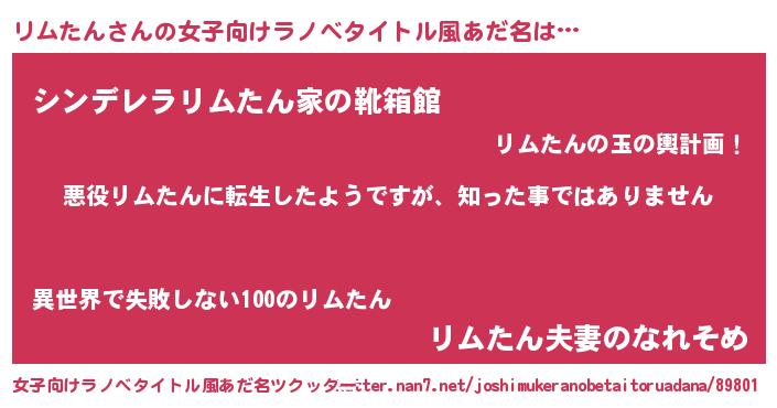| 男性向けラノベタイトル風あだ名 | 『この素晴らしい世界にリムたんを!』 |