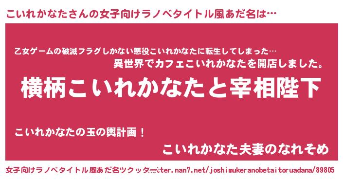 | 男性向けラノベタイトル風あだ名 | 『こいれかなたに滅ぼされるだけの簡単なお仕事です』 |
