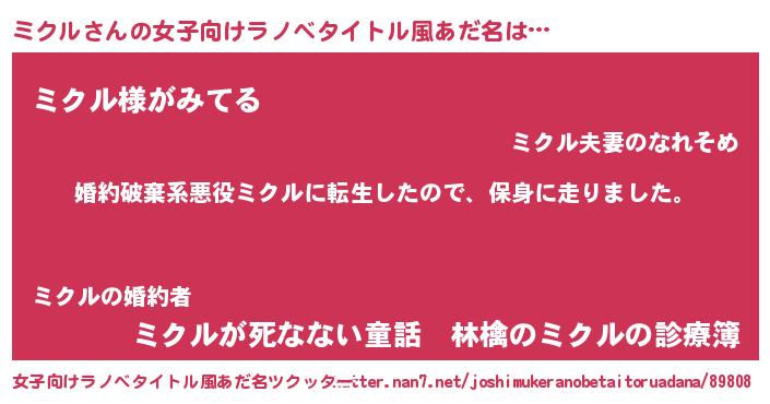| 可愛いあだ名 | 『ミクぷりん』『ミっクぃー』 |