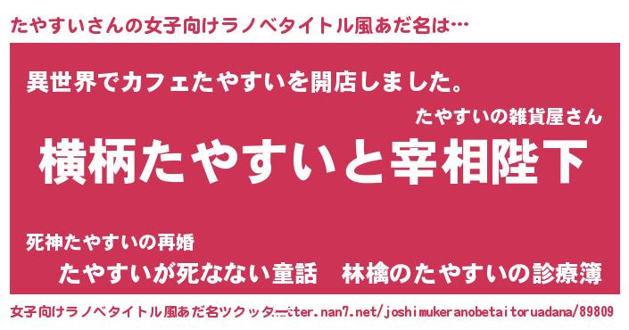 | 意味不明あだ名 | 『永久保存たやすい』 |