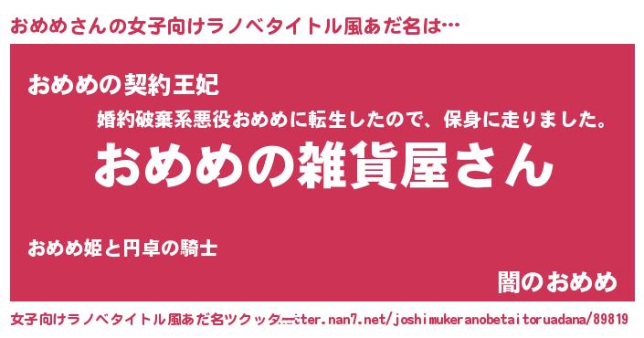 | ファンタジー風あだ名 | 『エターナルオメメー』『オメディッシュ』 |