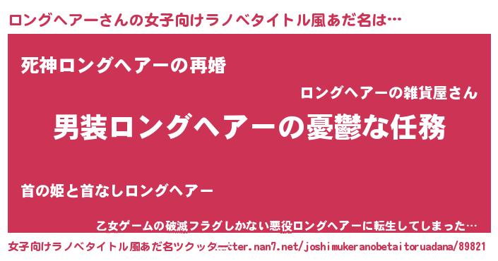 | 男性向けラノベタイトル風あだ名 | 『冴えないロングヘアーの育てかた』 |