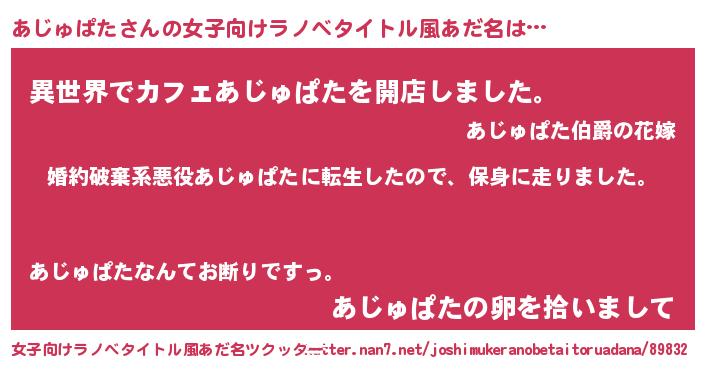 | 男性向けラノベタイトル風あだ名 | 『転生したらあじゅぱただった件』 |