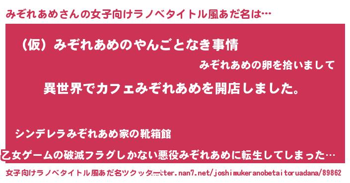 | ヘコむあだ名 | 『みぞれあめ(笑)』『みぞもー』 |