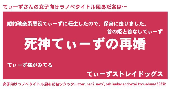 | 伝説のあだ名 | 『救世主となる占い師てぃーず』 |