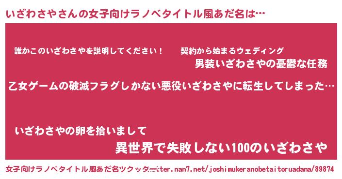 | 意味不明あだ名 | 『住所不定無職いざわさや(79歳)』 |