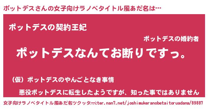 | 男性向けラノベタイトル風あだ名 | 『魔法科高校のポットデス』 |