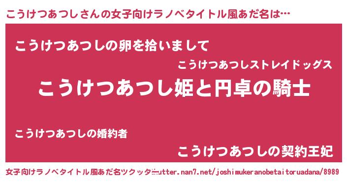 | 男性向けラノベタイトル風あだ名 | 『こうけつあつしの憂鬱』 |