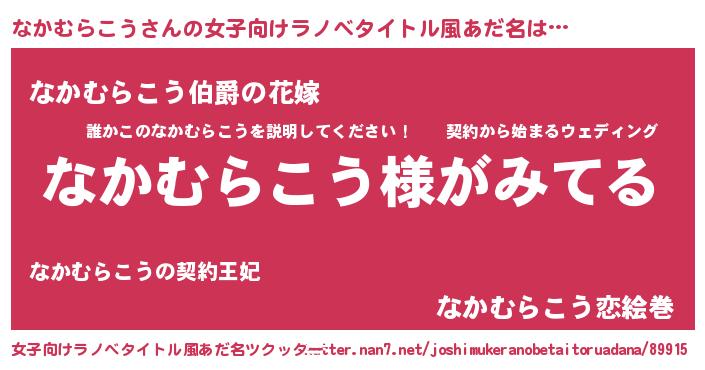 | 男性向けラノベタイトル風あだ名 | 『なかむらこうの嫁は女の子じゃないと思った?』 |
