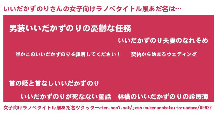 | 男性向けラノベタイトル風あだ名 | 『イイダカズノリアートオンライン』 |
