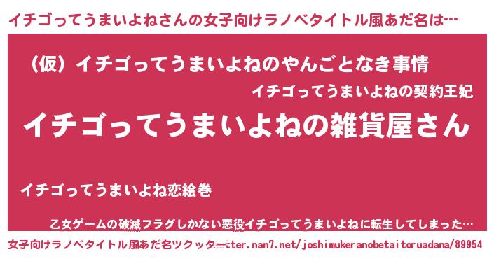 | ファンタジー風あだ名 | 『エターナルイチゴッテウマイヨネー』 |