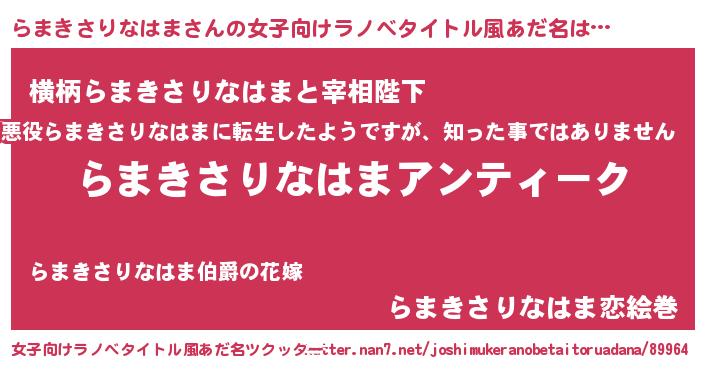 | 男性向けラノベタイトル風あだ名 | 『魔法科高校のらまきさりなはま』 |