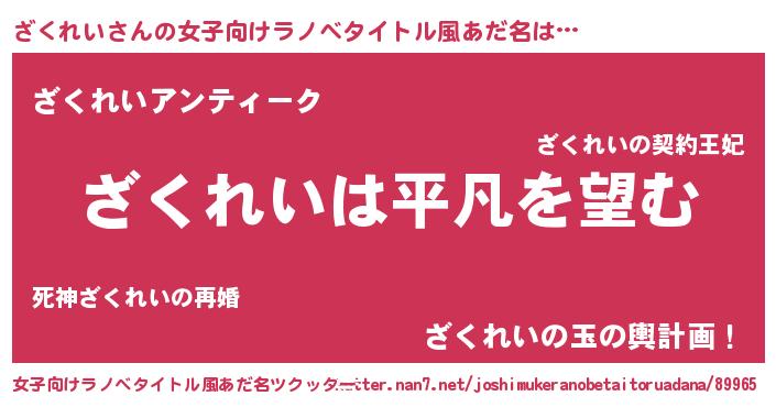 | 男性向けラノベタイトル風あだ名 | 『ダンジョンにざくれいを求めるのは間違っているだろうか』 |