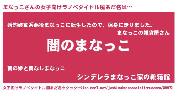 | 男性向けラノベタイトル風あだ名 | 『Re:まなっこから始める異世界生活』 |