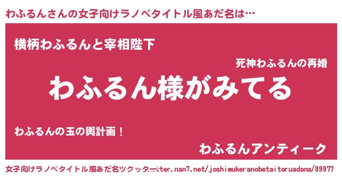 | 男性向けラノベタイトル風あだ名 | 『わふるんの嫁は女の子じゃないと思った?』 |