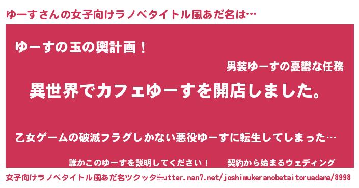 | 男性向けラノベタイトル風あだ名 | 『誰もが恐れるあのゆーすが、ぼくの専属メイドになるようです。』 |