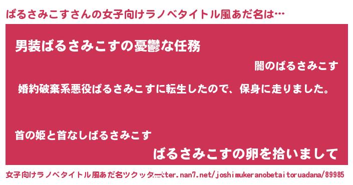 | 料理風あだ名 | 『ばるさみこすごはん』 |
