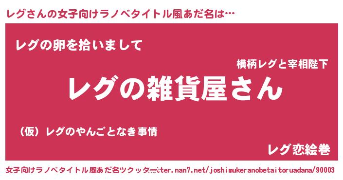 | 男性向けラノベタイトル風あだ名 | 『やはりレグの青春ラブコメはまちがっている 』 |