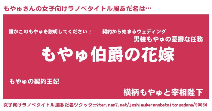 | 男性向けラノベタイトル風あだ名 | 『やはりもやゅの青春ラブコメはまちがっている 』 |