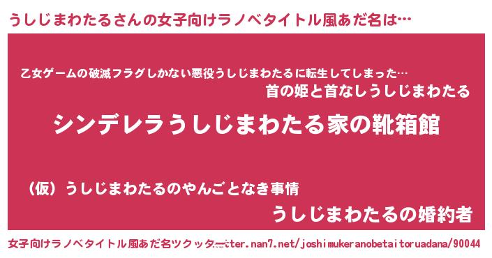| 意味不明あだ名 | 『住所不定無職うしじまわたる(47歳)』 |