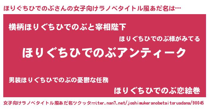 | 肩書あだ名 | 『ほりぐちひでのぶ閣下』 |