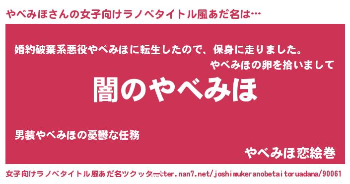 | 男性向けラノベタイトル風あだ名 | 『Re:やべみほから始める異世界生活』 |