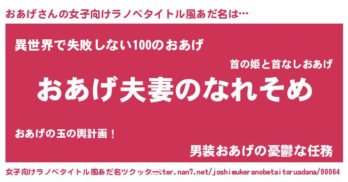 | ヒーロー風カッコイイあだ名 | 『正義の使者おあげ』『ネオオアゲ』 |