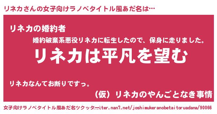 | 胡散臭い通販商品みたいなあだ名 | 『信頼と実績のサプリメント…その名も「リネカ」』 |