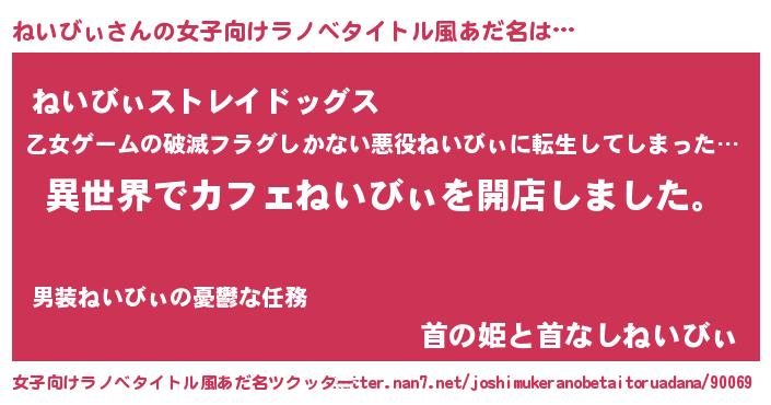 | 男性向けラノベタイトル風あだ名 | 『誰もが恐れるあのねいびぃが、ぼくの専属メイドになるようです。』 |