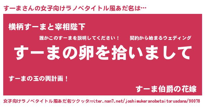 | 男性向けラノベタイトル風あだ名 | 『すーまの嫁は女の子じゃないと思った?』 |