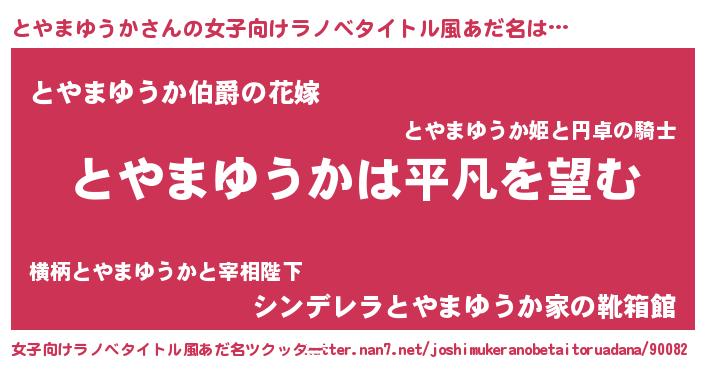 | ポケモン風あだ名 | 『ヒトヤマユウカ』『トヤマダネ』 |