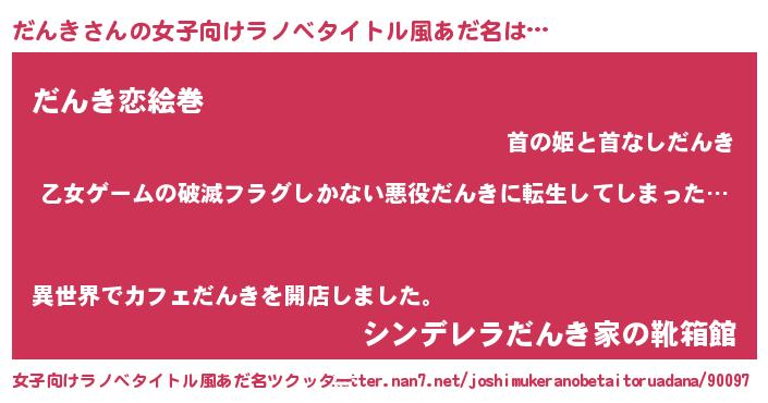 | 胡散臭い通販商品みたいなあだ名 | 『世界中を虜にした世界で10本だけ現存している希少なブランデー…その名も「だんき」』 |