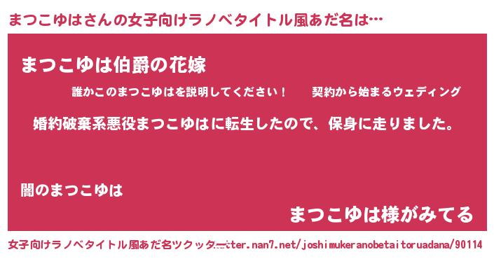 | 胡散臭い通販商品みたいなあだ名 | 『幸せが訪れる高級そうな壺…その名も「まつこゆは」』 |